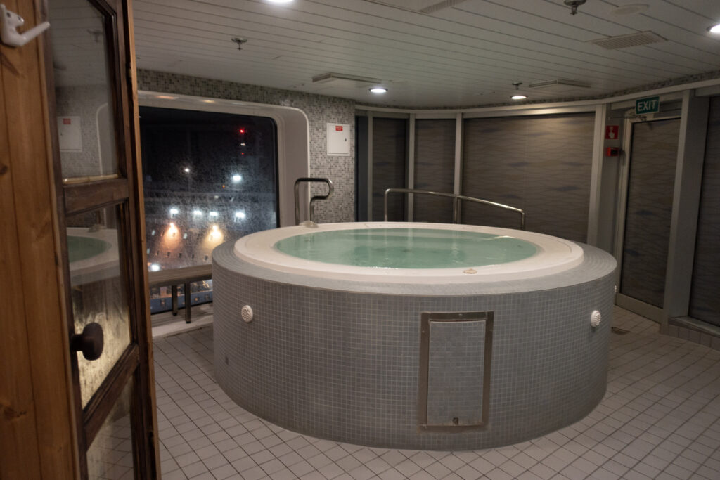 On découvre que dans le ferry, on se trouve déjà en Finlande : toute la carte du snacking à bord qui comporte des produits finlandais comme les roulés à la cannelle et le café filtre typiques des pays scandinaves, ou le long drink « Lonkero » pour l’apéritif (sorte de gin tonic inventé pour les jeux olympiques d’Helsinki en 1952). L’heure à bord est également celle d’Helsinki (on ajoute une heure), et les annonces sont faites en finnois, allemand et anglais. Surtout, un sauna, indispensable de la culture finlandaise, est ouvert dès l’embarquement et quasiment en permanence. Quel contraste de passer d’une cale pleine de remorques de camions à ce confortable sauna !