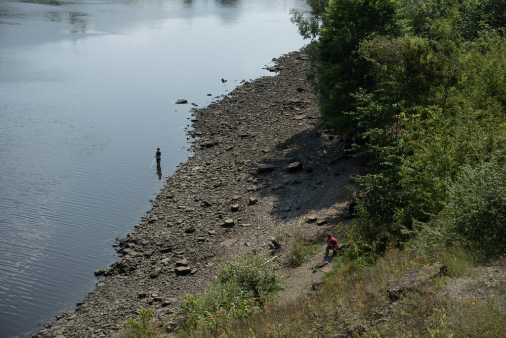 Près de la rive, parfaitement rénovée du côté estonien, et à priori moins du côté russe, on aperçoit des gens qui s’approchent pour capter le réseau russe et téléphoner. Des pêcheurs sont installés paisiblement des deux côtés du fleuve peu profond. Il serait aisé de traverser les 150 mètres de rive mais cette dernière semble bien gardée avec, côté russe, des guérites permettant de visualiser toute la zone.