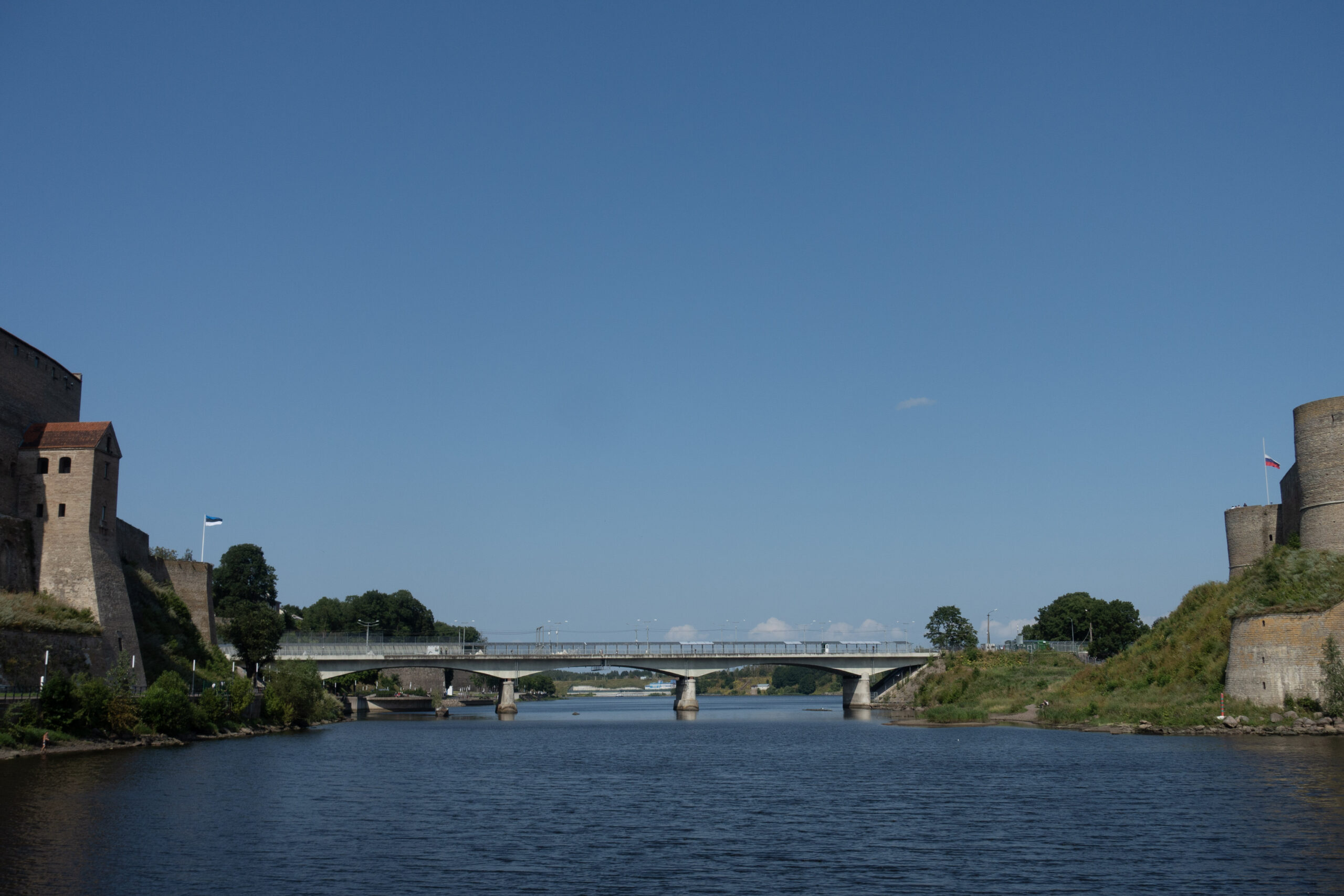 Narva est l’un des rares points frontières ouverts entre l’Union Européenne et la Russie. Et bien qu’il ne soit aujourd’hui ouvert qu’aux piétons, il s’agit d’un point de passage historique et l’un des plus actifs. Deux points frontières plus au sud du pays sont ouverts aux véhicules, ils peuvent être empruntés après de longues attentes et une inscription sur un système de réservation plusieurs semaines à l’avance. Mais ils sont plus excentrés et de toute façon caducs pour les véhicules immatriculés en Russie qui ne sont plus autorisés à rentrer en Estonie.