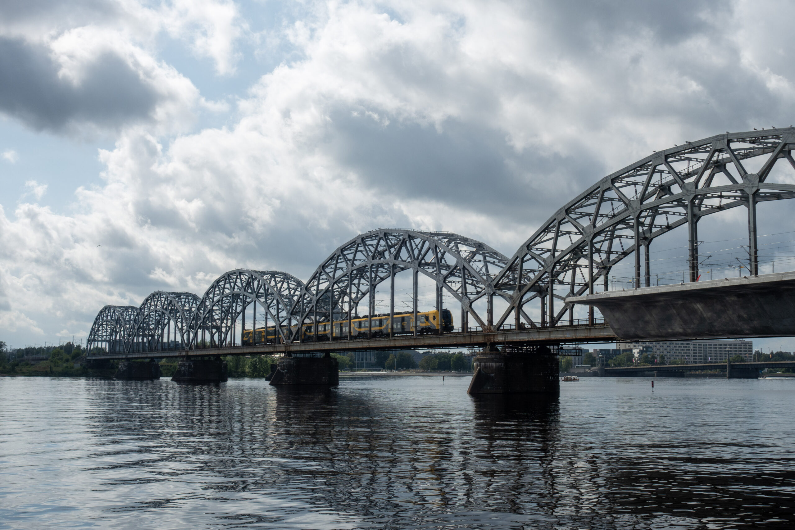 Les alentours de la gare centrale sont magnifiques avec, en descendant en train vers le sud, un passage devant les voûtes du marché central, et le passage sur le pont au-dessus du fleuve Daugava. En observant les trains qui y passent fréquemment, on remarque la diversité des matériels roulants aux livrées et époques de construction hétéroclites. Un train de banlieue récent et à la livrée jaune précède une vieille rame tractée rouge et grise. On se demande surtout si personne n’a pensé à faire rouler plus de trains entre les 3 pays baltes.