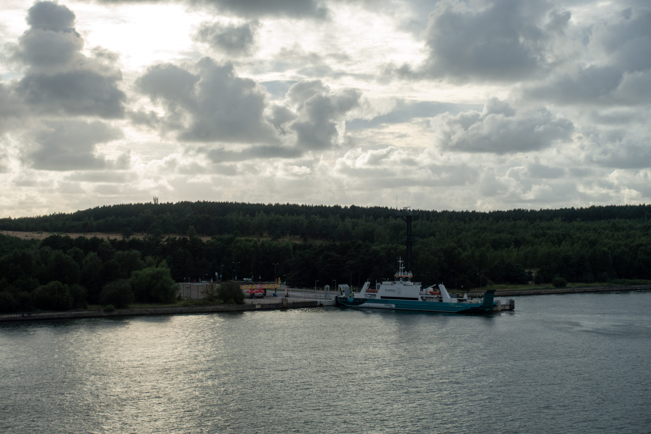 On arrive à Klaipėda, la troisième ville la plus peuplée du pays et le terminus du train après 4h30 de trajet. Le port est un peu loin de la gare : à une quarantaine de minutes en bus ou 15min en taxi. En face de celui-ci, on aperçoit l’isthme de Courlande : surnommé le « Sahara balte », il s’agit d’une bande de terre et de dunes qui s’étend sur 100km vers le sud, et qui sépare la baie de Klaipėda de la mer Baltique. On peut s’y rendre via un ferry traversier et une route relie les différents villages sur la côte.